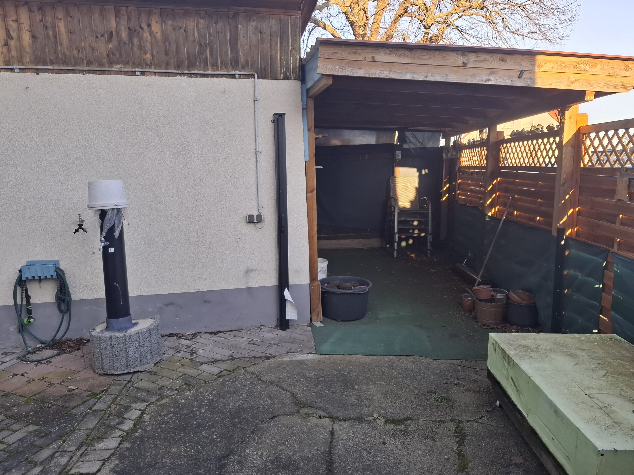 Am Haus angrenzend, befindet sich noch eine Garage und ein kleines Nebengebäude für Abstellzwecke.
